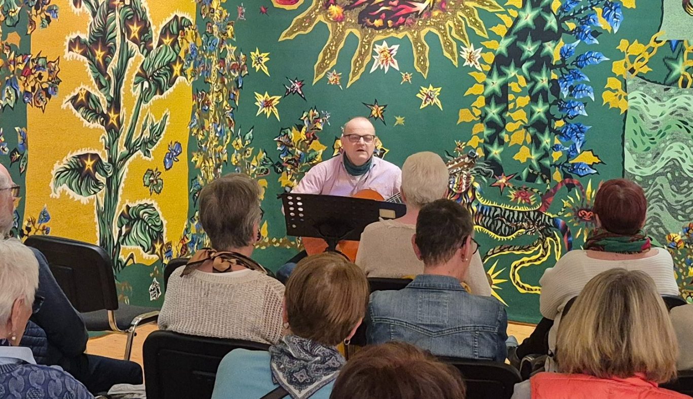 Ein stiller, eindrucksvoller Liederabend voller Tiefe und Aktualität: Udo G. schenkte dem Publikum einen ruhigen und zugleich bewegenden Abend, der noch lange nachwirkt. Mit großer Sensibilität interpretierte er Lieder, deren Botschaften – trotz ihres Alters – erstaunlich zeitgemäß sind. Das Museum erwies sich dabei als idealer Ort: Inmitten der Werke von Jean Lurçat wurde spürbar, wie Kunst über Generationen hinweg Fragen stellt, die uns bis heute beschäftigen. Udo G. nahm die besondere Atmosphäre dieses Raumes auf, verwandelte sie in musikalische Energie und gab sie dem Publikum zurück. So entstand ein intensives Gesamterlebnis, das diesen Abend zu etwas ganz Besonderem machte und den Besucherinnen und Besuchern nachhaltig in Erinnerung bleiben wird.